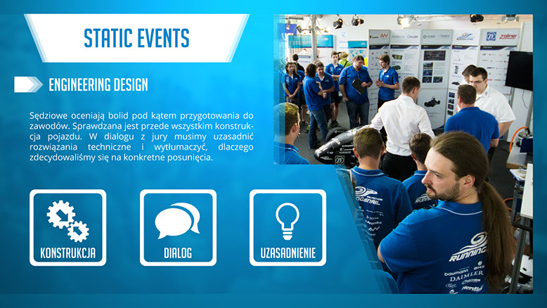 Struktura zawodów wymaga od nas wielopłaszczyznowego myślenia - choć podstawowym zadaniem jest budowa samochodu wyścigowego, zawody zwykle nie kończą się zwycięstwem drużyny, która skonstruowała najszybszy pojazd - aby odnieść sukces, należy rozważyć wiele innych kwestii.